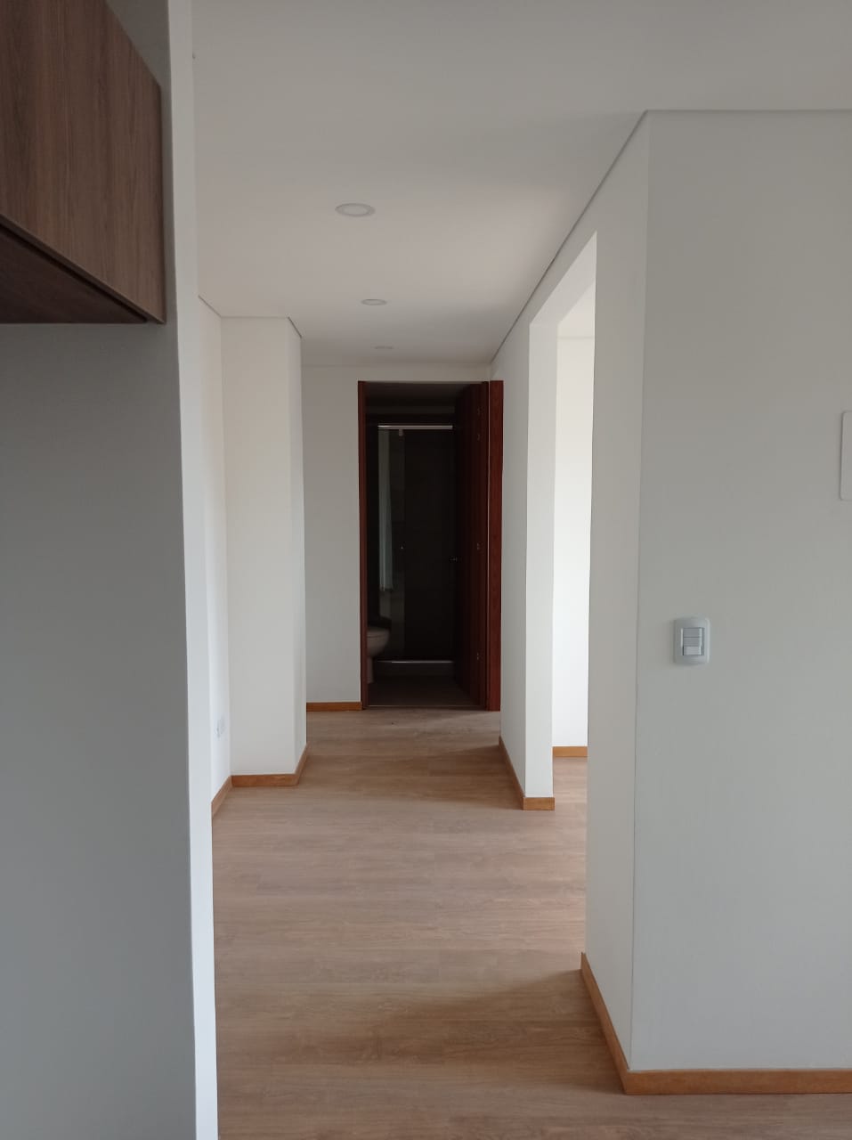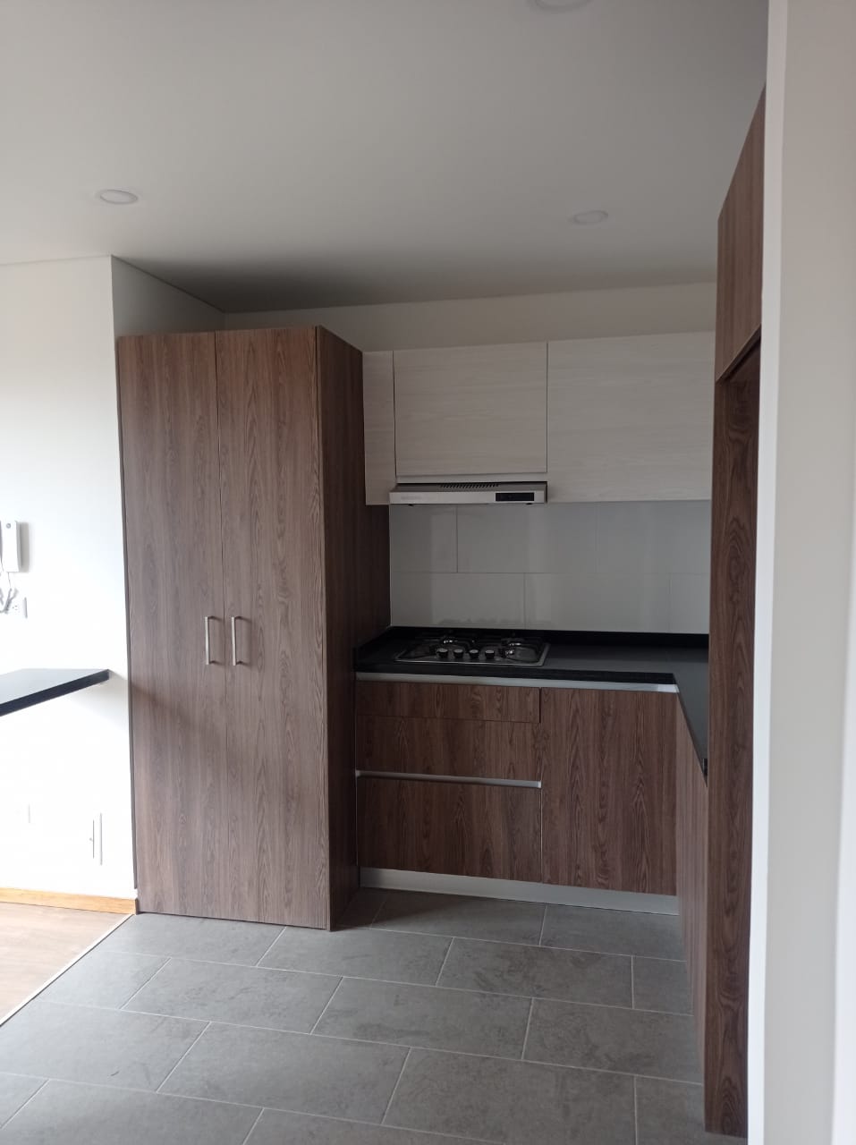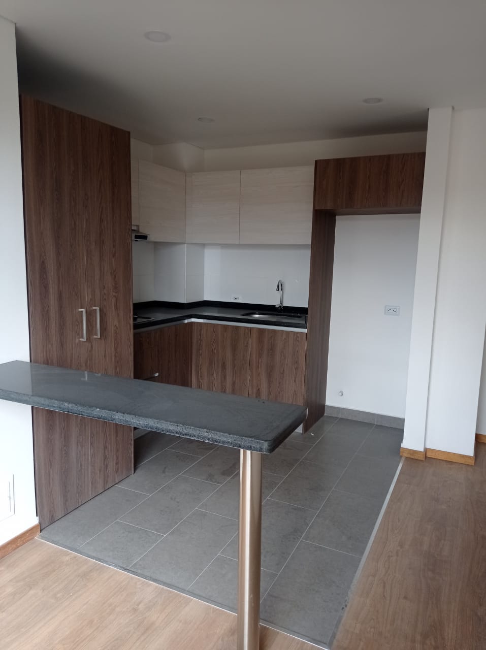 Hermos apartamento para estrenar de 48 mts2, cuenta con 1 habitacion con baño y vestier, sala de tv, cocina integral, zona de lavanderia y parqueadero cubierto, el edificio cuenta co terraza y zona BBQQ, vigilancia las 24 horas del dia.